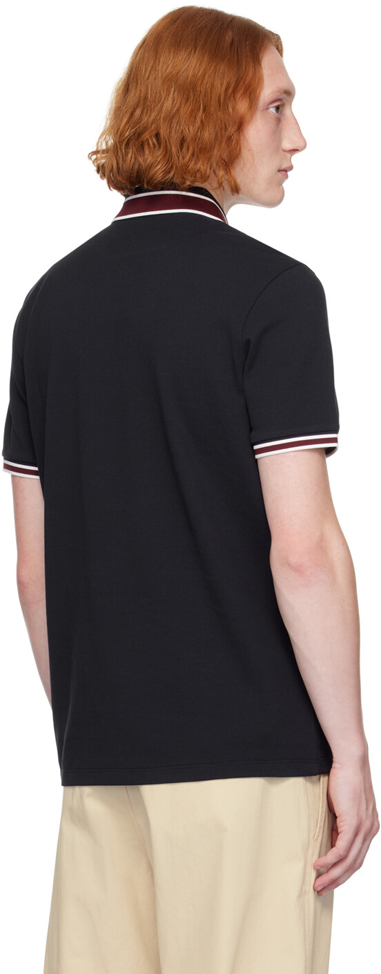 Темно-синее поло на двух пуговицах. Поло из хлопкового пике. · Полосатый трикотажный воротник и манжеты из рубчика. · Планка на двух пуговицах. · Войлочная нашивка с логотипом на груди. Цвет поставщика: темно-синий, 100% хлопок. Сделано в Турции.