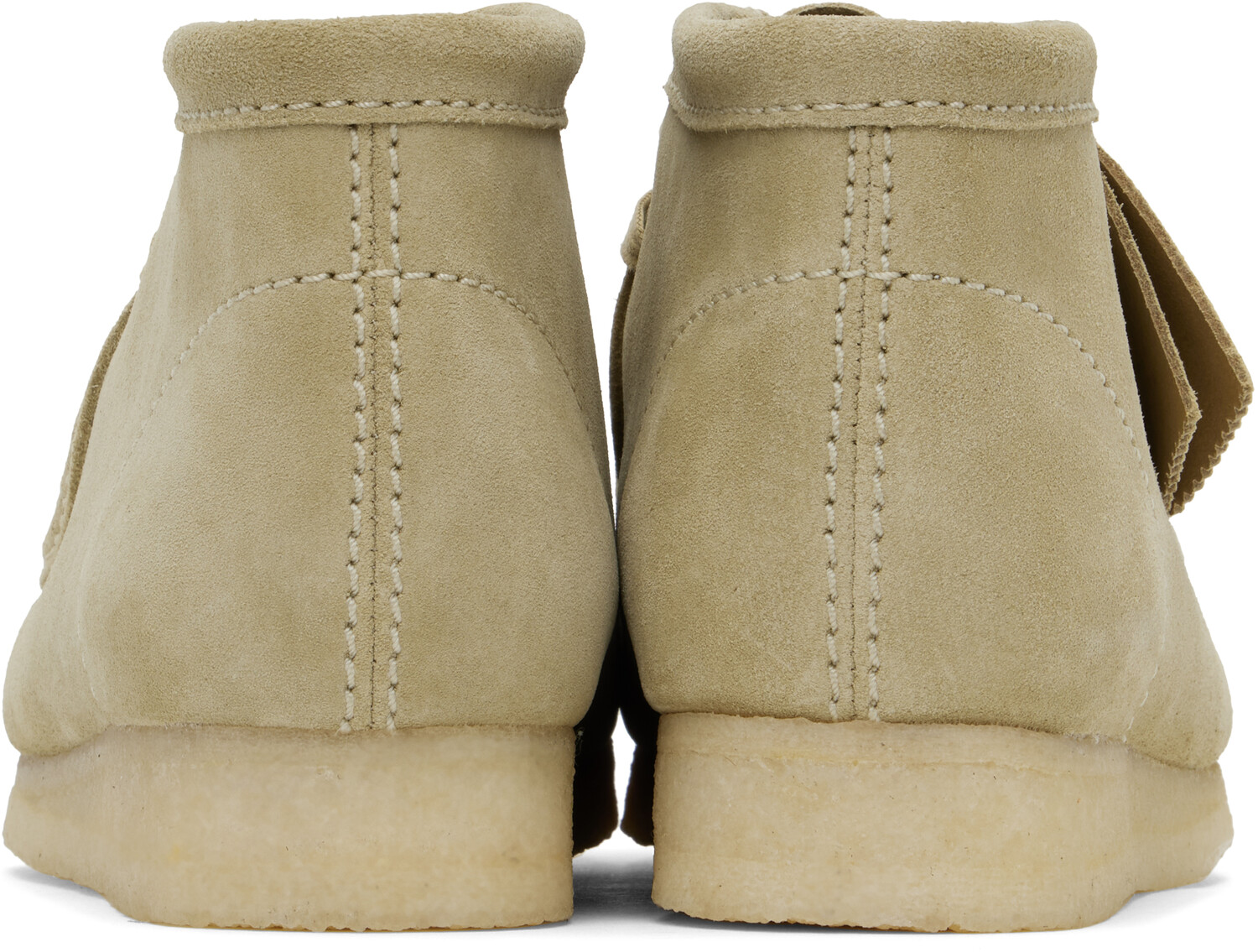 Ботинки Taupe Wallabee Desert. Ботинки-дезерты из замши до щиколотки в серо-коричневом цвете.· Квадратный носок Moc· Бирки с логотипом на шнуровке· Замшевая подкладка· Подошва из каучука с сертификатом FSCЦвет поставщика: кленовая замшаВерх: кожа. Подошва: резина. Сделано в Албании.