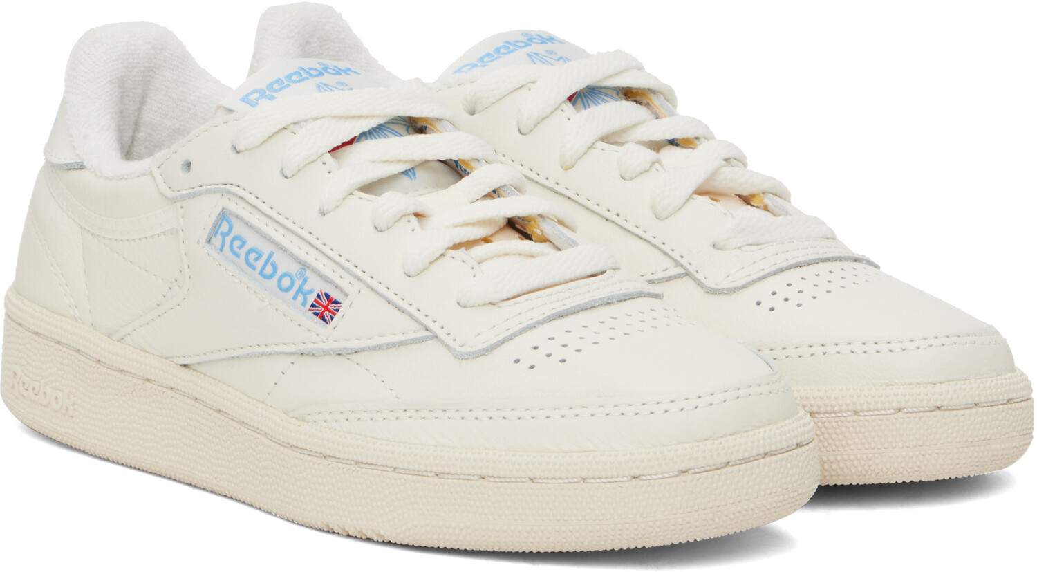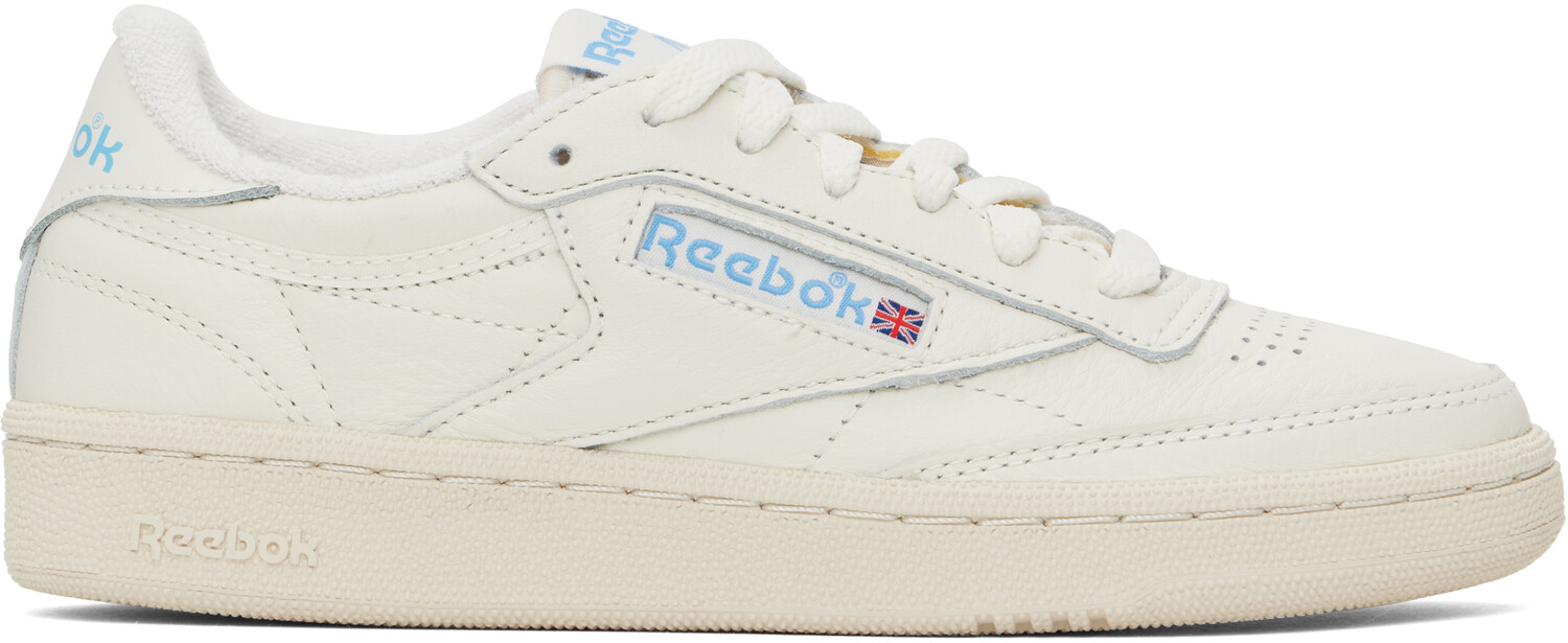 Кроссовки Off-White Club C 85 Vintage. Низкие кроссовки из зернистой кожи в цвете «слоновая кость».· Перфорированная отделка на носке.· Шнуровка.· Нашивка с логотипом на мягком язычке.· Мягкий воротник.· Вставка с логотипом на внешней стороне.· Логотип, напечатанный на пятке.· Подкладка из махровой ткани.· Резиновая подошва с протектором. Цвет поставщика: Chalk/Alabas/Skyblu. Верх: кожа. Подошва: резина. Сделано во Вьетнаме.