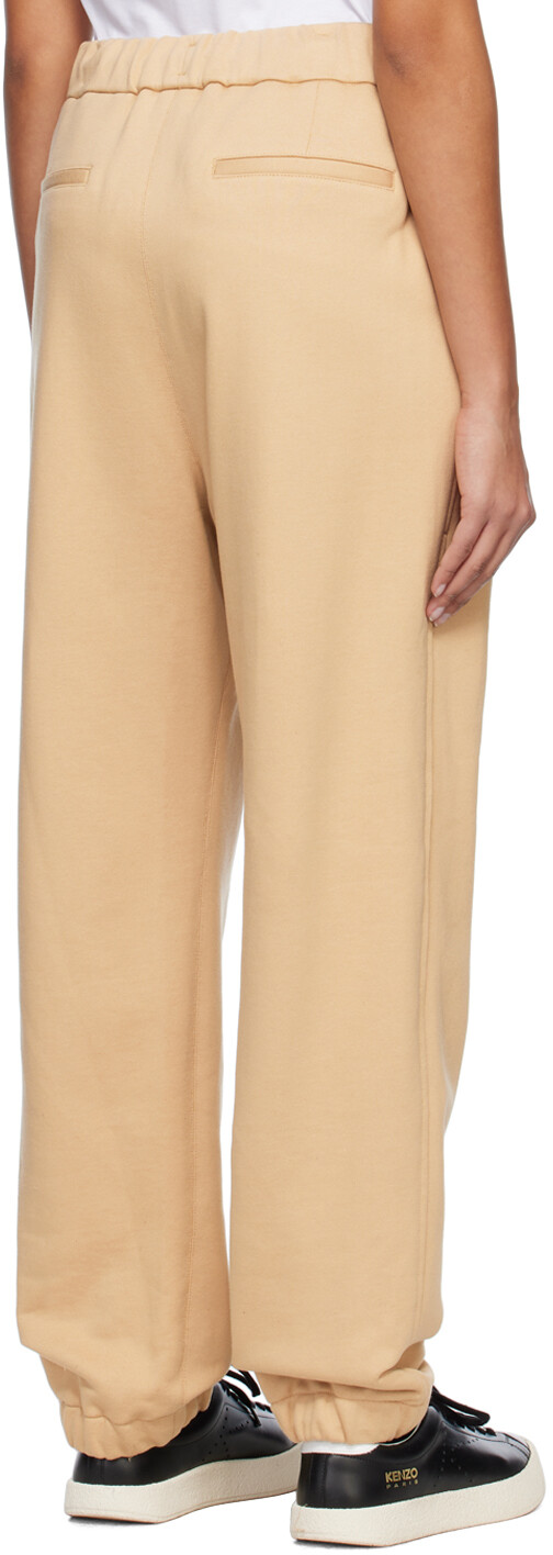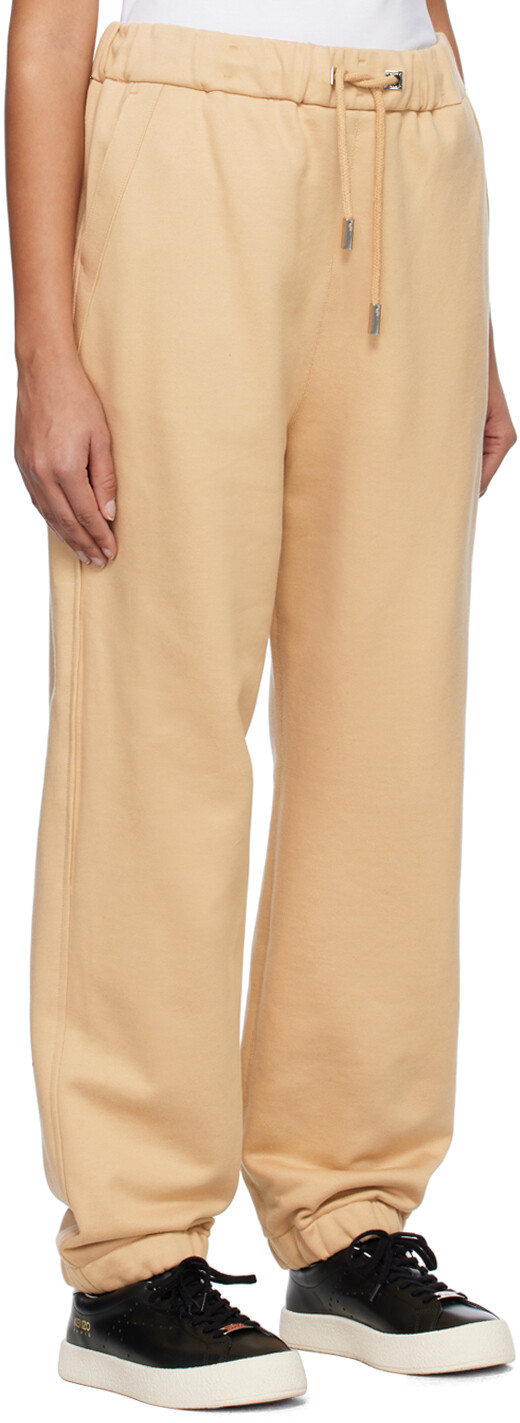 Бежевые брюки для дома на шнурке. Брюки для дома из французского трикотажа. · Затягивающийся шнурок на эластичном поясе. · Четыре кармана. · Вышитый логотип спереди на штанине. · Скрытый шнурок-резинка на эластичных манжетах. · Выгравированный логотип серебристой фурнитуры. Цвет поставщика: бежевый, 100% хлопок. Сделано в Южной Корее.
