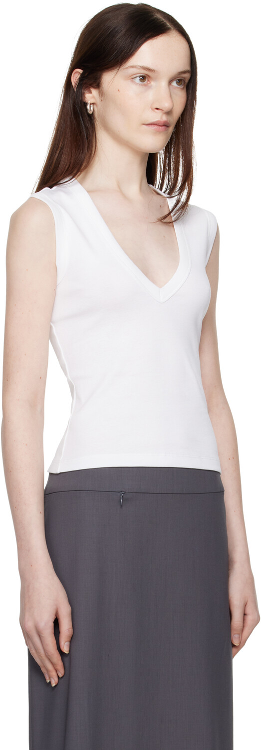Белая майка Dewi. Майка из органического хлопкового джерси. · Трикотажные изделия из рубчика с глубоким V-образным вырезом и проймами. · Центральный шов сзади. Цвет поставщика: белый. 100% органический хлопок. Сделано в Португалии.