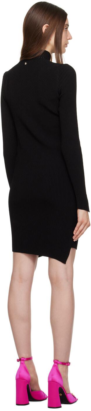 Черное мини-платье с разрезами. Платье из вискозы и смеси трикотажа в рубчик. · Ложный воротник · Вырез на груди · Асимметричный подол и манжеты · Фурнитура с логотипом на воротнике сзадиЦвет поставщика: черный 88% вискозы, 12% полиэстера. Сделано в Италии.