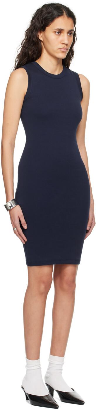Темно-синее мини-платье Esme. Платье из органического хлопкового джерси. · Круглый вырез и проймы рукавов из трикотажной резинки. · Центральный шов сзади. Цвет поставщика: темно-синий. 100% органический хлопок. Сделано в Португалии.
