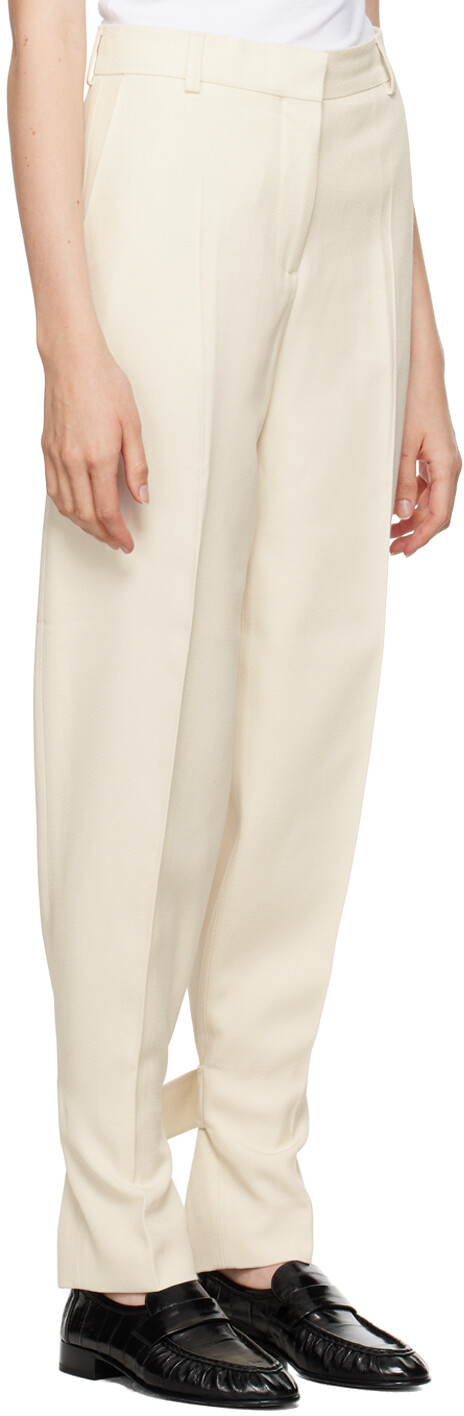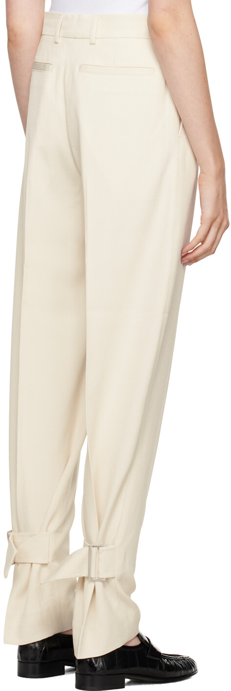 Брюки свободного покроя с пряжками Off-White. Свободные зауженные брюки из вискозной ткани. · Шлевки для ремня · Четыре кармана · Застежка-молния · Складки на штанинах · Застежка-ремешок на манжетах сзадиЦвет поставщика: экрю 93% вискозы, 7% полиамида. Сделано в Португалии.