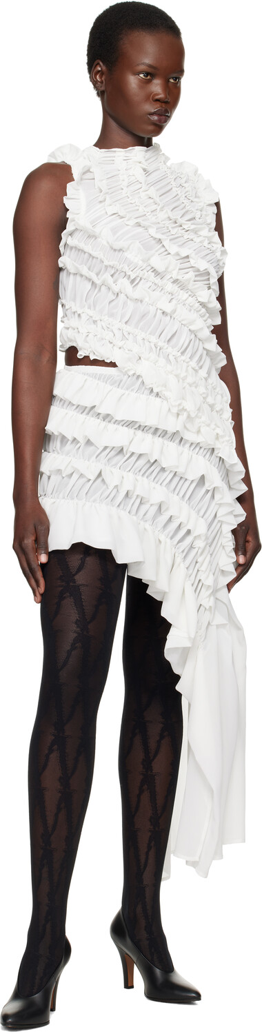 Белая мини-юбка Irving. Мини-юбка из полиэстерового крепа. Сборки и оборки по всему изделию. Асимметричная конструкция. Эластичный пояс. Удлиненная отделка по подолу. Цвет поставщика: Белый 100% полиэстер. Сделано в Португалии.