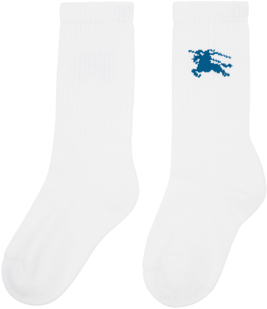 Белые ребристые носки из смеси хлопка. Пара носков из смеси хлопка и нейлона длиной до икры белого цвета. Жаккардовый логотип на ребристых манжетах. Цвет поставщика: белый 87% хлопок, 12% полиамид, 1% эластан. Сделано в Италии.