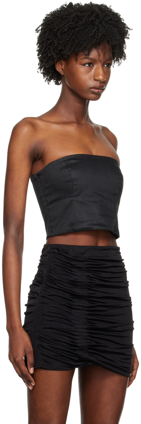 Черный топ-труба Lica. Топ-труба из эластичной льняной и вискозной саржи. Косточки по всей длине. Прямой вырез. Застежка-молния на боковом шве. Полностью атласная подкладка. Цвет поставщика: черный. Состав: 61% лен, 36% вискоза, 3% эластан. Подкладка: 65% акрил, 35% полиэстер. Сделано в Португалии.