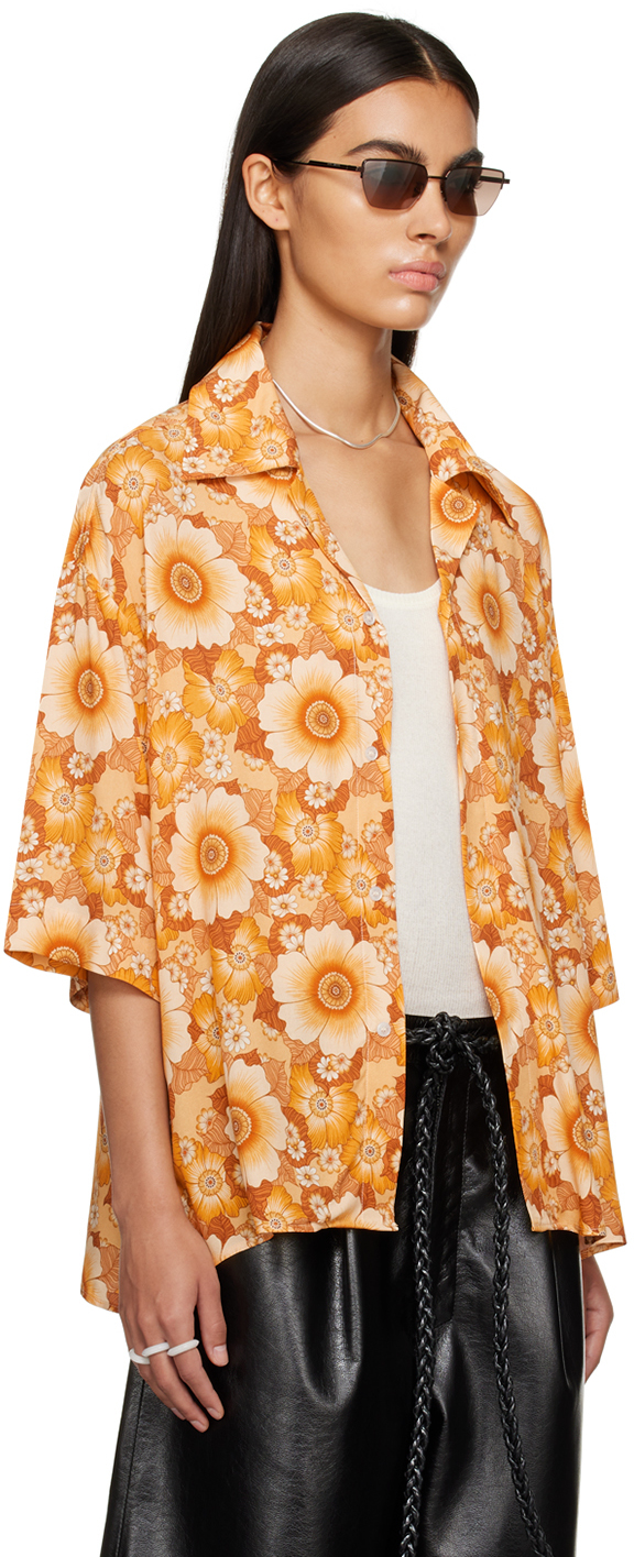 Оранжевая рубашка с цветочным принтом LU'U DAN