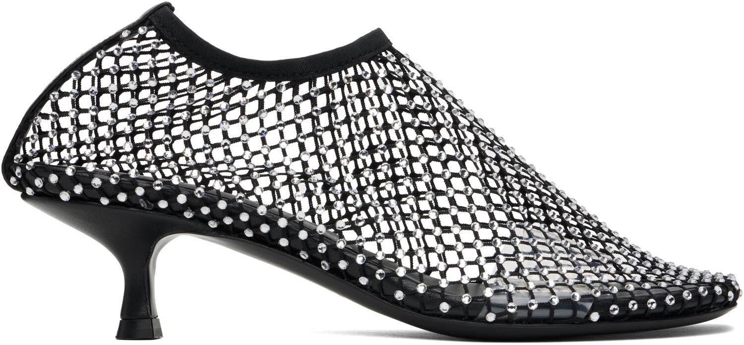 Каблуки Minette Micro черного цвета. Прозрачные сетчатые каблуки черного цвета.· Акценты из ограненных кристаллов по всей поверхности.· Квадратный носок.· Эластичный воротник.· Покрытый каблук-рюмочка с резиновым напылением.· Кожаная подошва.· Каблук: H1.75". Цвет поставщика: черный. Верх: текстиль. Подошва: кожа, резина. Сделано в Италии.