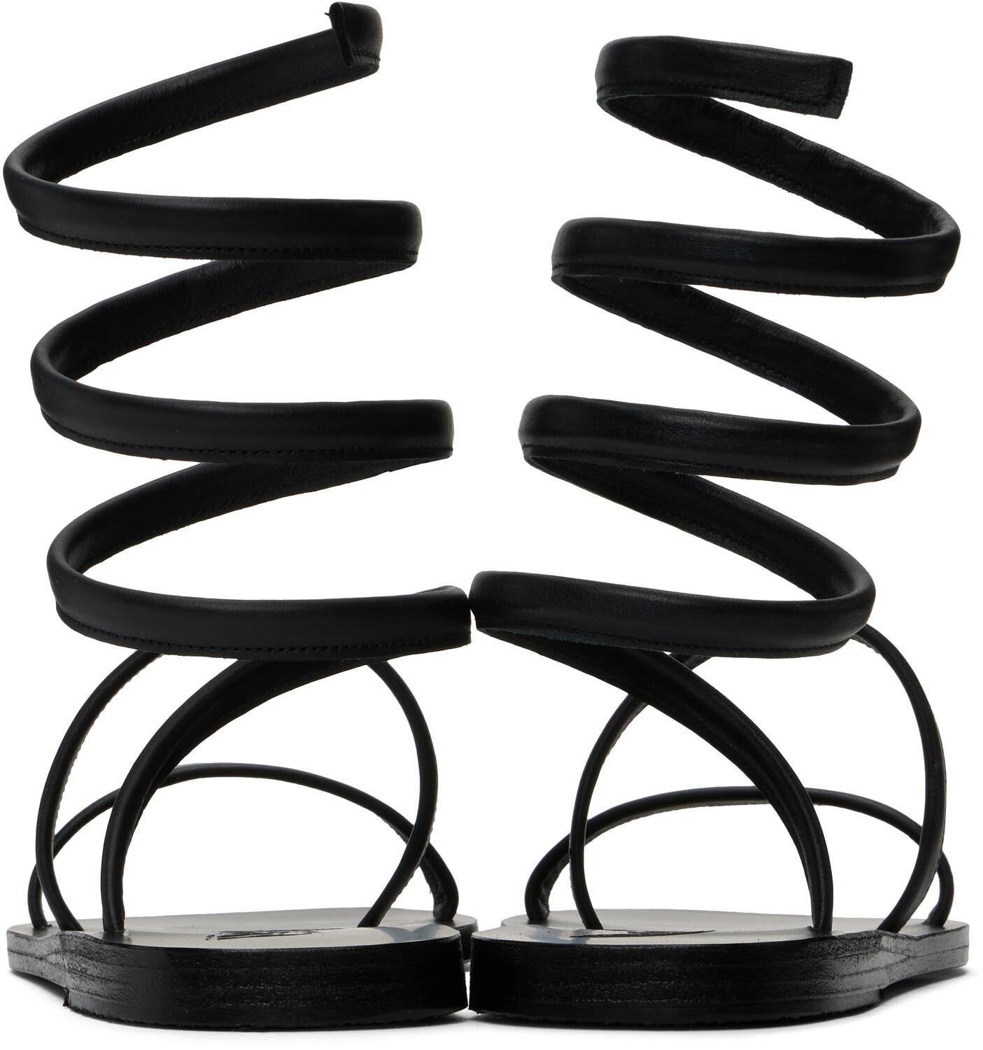Черные сандалии Ofis. Сандалии ручной работы из полированной кожи черного цвета.· Открытый носок· Ремешок вокруг щиколотки· Тисненый логотип на стельке· Кожаная подошва с литьем резиныЦвет поставщика: черныйВерх: кожа. Подошва: кожа, резина. Сделано в Греции.