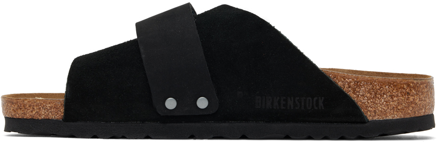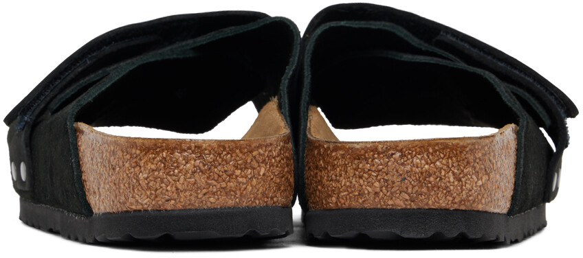 Черные узкие сандалии Kyoto. Замшевые и нубуковые сандалии без застежек черного цвета.· Открытый носок· Ремешок на липучке на союзке· Тисненый логотип на союзке и внутренней стороне· Логотип, напечатанный на формованной замшевой стельке· Латексно-пробковая промежуточная подошва· Протекторная резиновая подошва EVAЦвет поставщика: черныйВерх: кожа. Подошва: резина. Сделано в Германии.