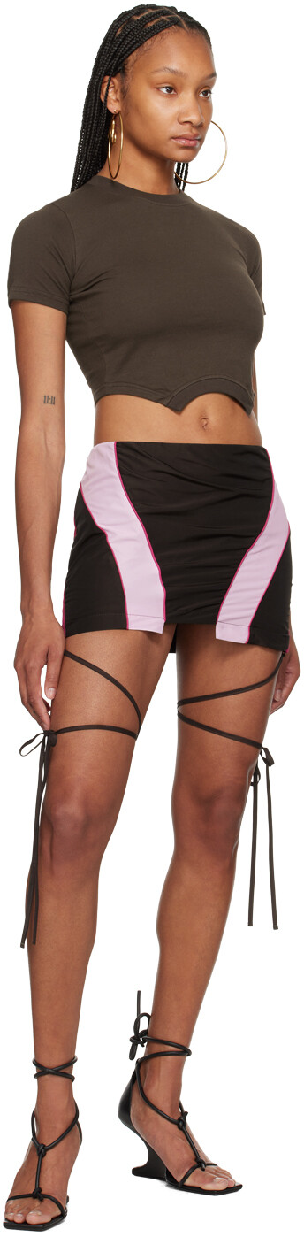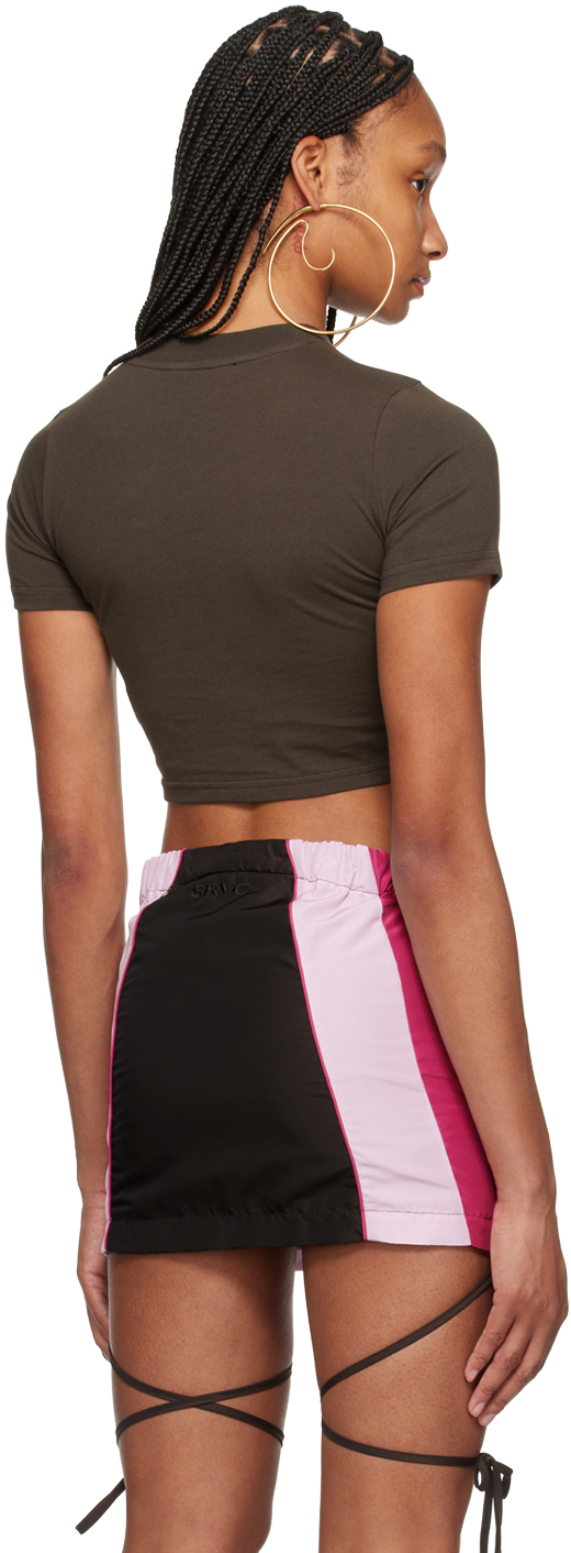 Футболка Overturned коричневого цвета. Футболка из хлопкового джерси. · Круглый вырез горловины из трикотажной резинки. · Вышитый логотип спереди. · Частично трикотажная резинка, укороченный изогнутый подол. Цвет поставщика: Коричневый 100% хлопок. Сделано в Португалии.