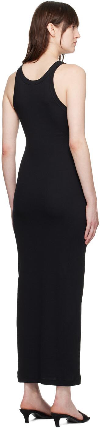 Черное изогнутое платье макси. Платье из эластичного органического хлопка в рубчик. Круглый вырез. Цвет поставщика: черный 95% органического хлопка, 5% эластана. Сделано в Португалии.
