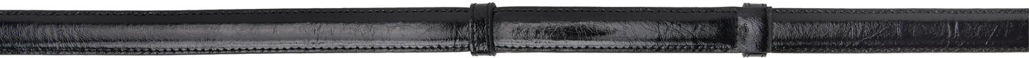 Черный ремень с застежкой-слайдом. Ремень из лакированной телячьей кожи черного цвета. · Застежка-липучка. · Фурнитура серебристого тона. · Ширина 0,75 дюйма. Цвет поставщика: черная кожа. Сделано в Италии.