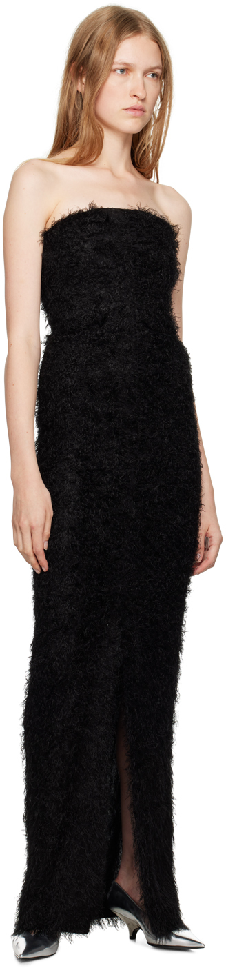 Черное платье без бретелек Fil Coupe Maxi. Легкое платье из вискозной вуали. Детали Fil-coupe по всему изделию.· Прямой вырез горловины· Косточки на лифе· Центральная шлица спереди по подолу· Потайная застежка-молния сзади· Частичная креповая подкладкаЦвет поставщика: черныйОснова: 100% вискоза. Подкладка: 100% полиэстер. Сделано в Португалии.