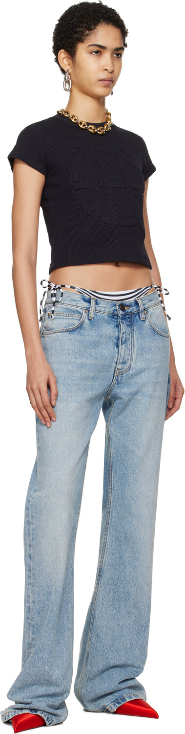 Черная футболка «The JPG». Футболка из хлопка вафельной вязки. · Круглый вырез горловины из трикотажной резинки. · Тисненый логотип спереди. · Укороченный подол. · Петля для застежки на воротнике сзади. Цвет поставщика: черный. 100% хлопок. Сделано в Португалии.