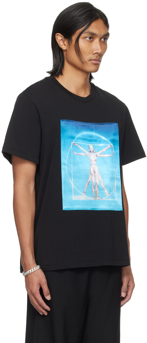 Черная футболка Vitruvian Woman. Футболка из органического хлопкового джерси с сертификатом GOTS. · Круглый вырез горловины из трикотажной резинки. · Нашивка с атласным принтом на груди. · Заниженная линия плеч. · Логотип напечатан сзади. Изготовлено из материалов, не тестируемых на животных, не являющихся предметом жестокого обращения. Часть капсульной коллекции Stella McCartney Sorayama. Цвет поставщика: черный. Основная часть: 100% органический хлопок. Отделка: 100% вискоза. Сделано в Португалии.