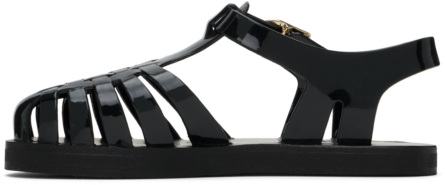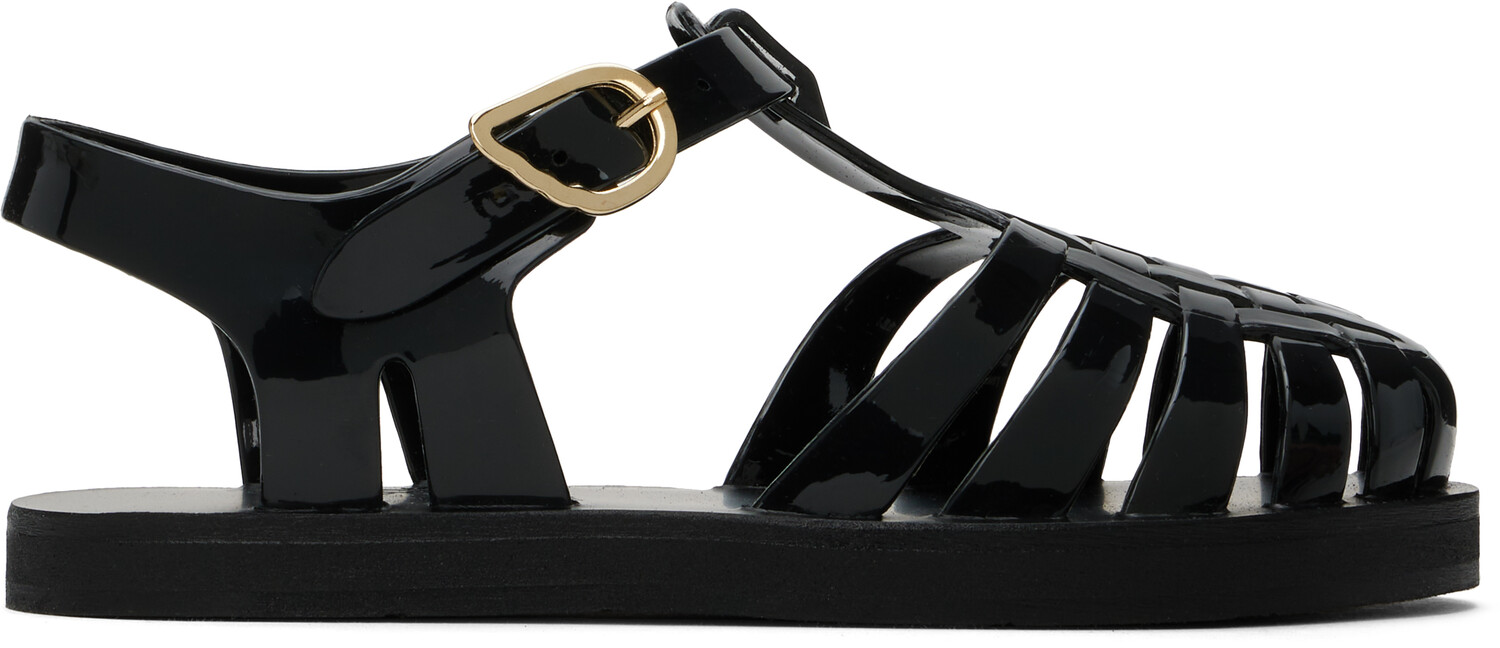 Черные сандалии Homeria Jelly. Виниловые сандалии ручной работы черного цвета.· Вырезы по всей поверхности· Ремешок на щиколотке с пряжкой· Тисненый логотип на стельке· Резиновая подошва с протекторомЦвет поставщика: черный Верх: поливинилхлорид. Подошва: резина. Сделано в Греции.