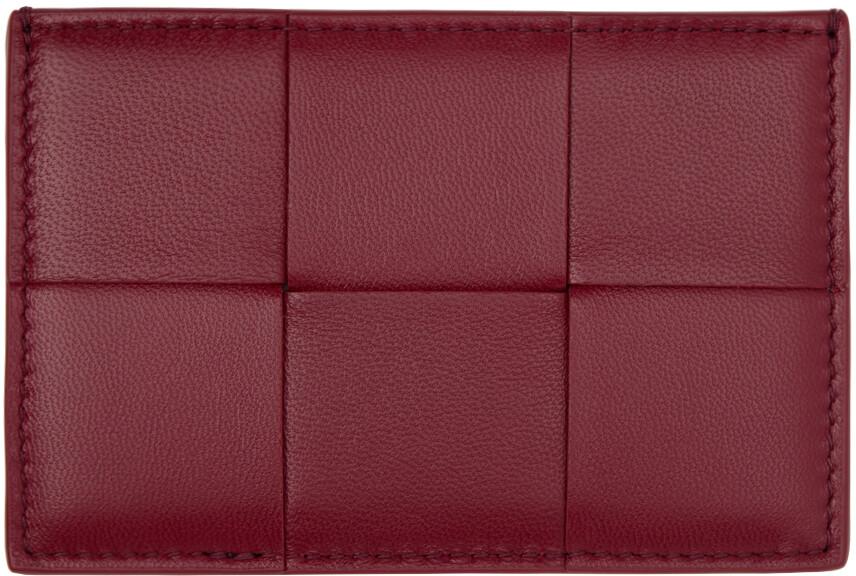 Красный держатель для карточек-кассет. Держатель для карточек из полированной овечьей кожи с переплетением Intreccio красного цвета. Тисненый логотип на задней стороне. Три отделения для карт. Центральный слот для купюр. Подкладка из холста и зернистой телячьей кожи. Размеры: В4,5" x Ш3". Цвет поставщика: красная овчина. Сделано в Италии.