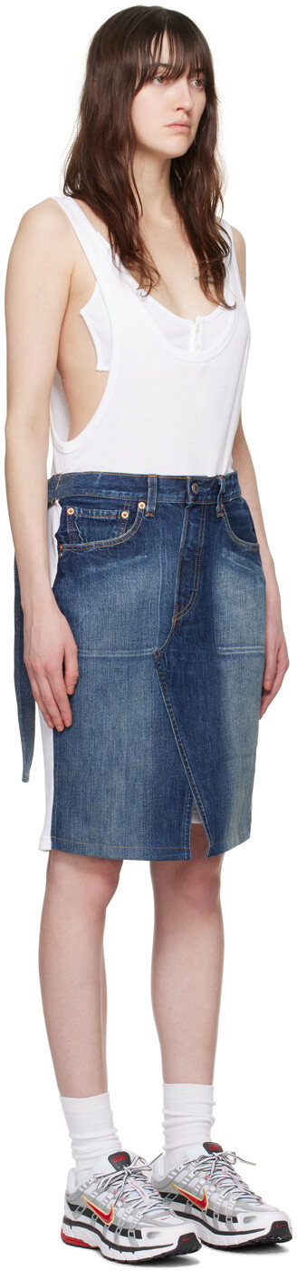 Платье-миди Pocketlegdress белого и индиго цвета. Платье из хлопкового трикотажа и неэластичного денима. Отделка в рубчик и потертости по всему изделию. · Панельная конструкция · Овальный вырез · Шлевки для ремня · Завязывающийся ремешок · Разрез спереди по низу · Контрастная строчка бежевого цвета Цвет поставщика: синий деним / белый 100% хлопок. Сделано в Германии.