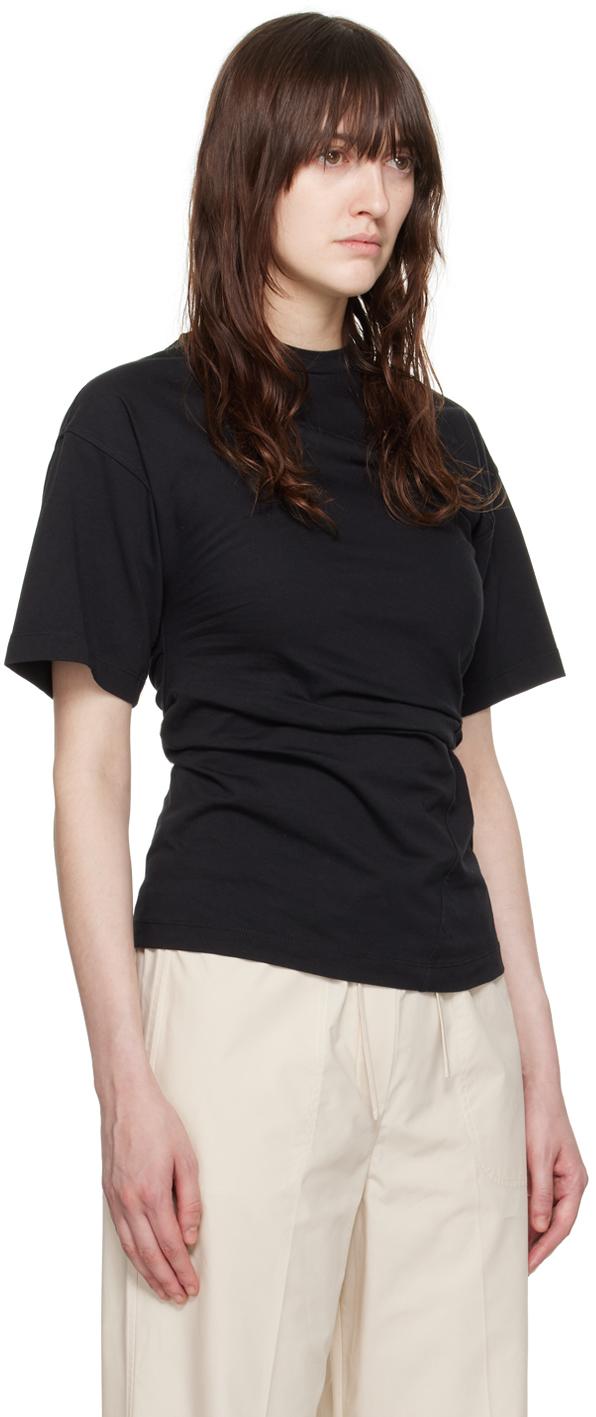 Черная футболка Twisted. Футболка из органического хлопкового джерси. · Круглый вырез горловины в рубчик. · Перекрученные боковые швы. Цвет поставщика: черный. 100% органический хлопок. Сделано в Португалии.