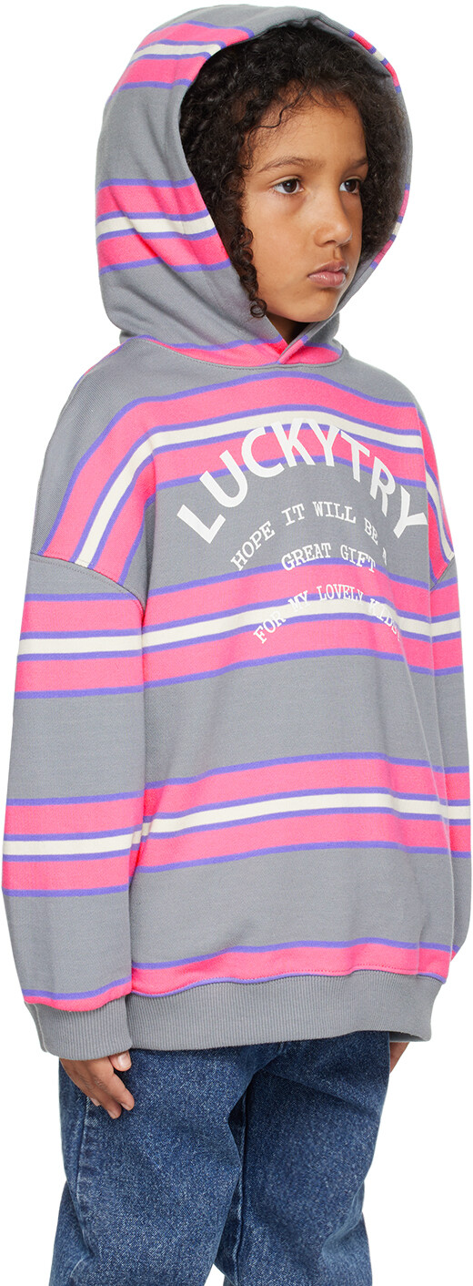 Детская толстовка с капюшоном в серую полоску Luckytry