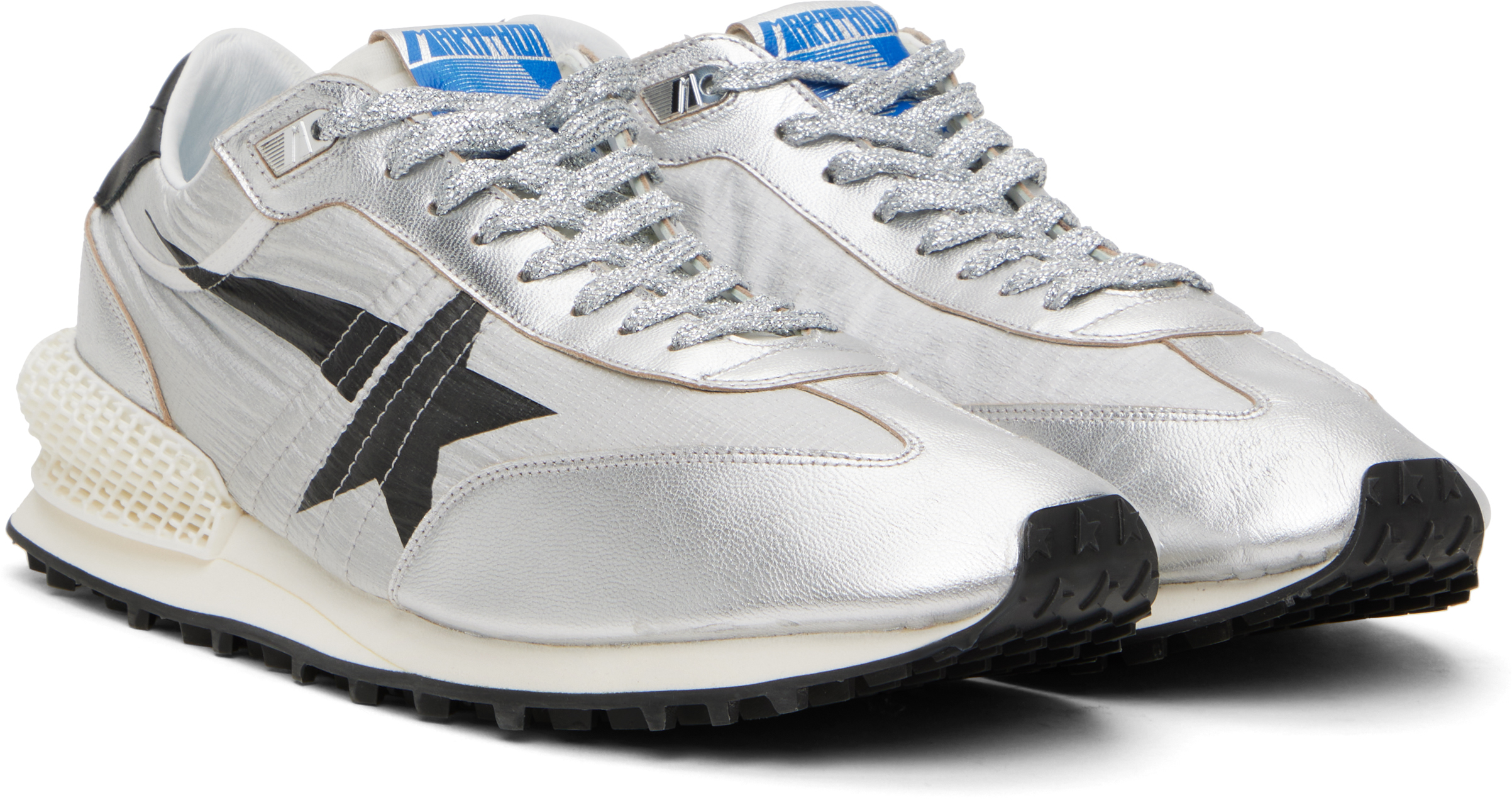 Кроссовки Silver Marathon. Низкие кроссовки ручной работы из рипстопа и зернистой овчины наппа серебристого тона.· Шнуровка· Нашивка с логотипом на мягком язычке· Мягкий воротник· Фирменная звезда, напечатанная снаружи· Люверсы с внутренней стороны· Логотип, напечатанный на пятке· Стабилизатор пятки, напечатанный на 3D-принтере· Подкладка из джерси· Промежуточная подошва из вспененной резины· Резиновая подошва с протекторомЦвет поставщика: серебристый/черный Верх: текстиль, овчина. Подошва: резина. Сделано в Италии.