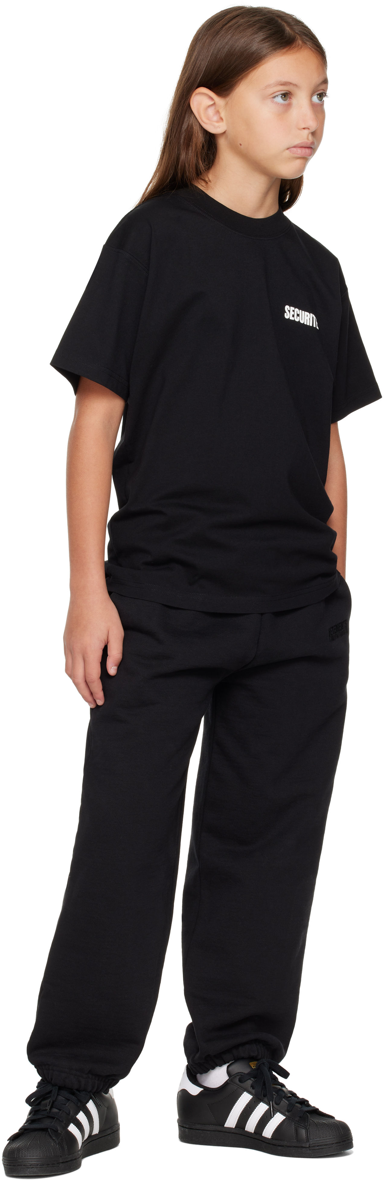 Футболка детская черная 'Securite'. Футболка из хлопкового джерси. · Круглый вырез горловины из трикотажа в рубчик. · Напечатанный текст на груди и спине. · Вышитый логотип на воротнике сзади. Цвет поставщика: черный. Рост модели 53 дюйма / 134,6 см, размер 8Y. Размер: Плоская грудь", Плоская талия", Плоские плечи". 4Y: 15,3-16,1", 8,7", 14,9"8Y: 16,9", 10", 16,1"10Y: 17,7", 11,4", 18,1"12Y: 18,9-20,5", 12,2", 19,7" Состав: 100% хлопок. Отделка: 97% хлопок, 3% эластан. Сделано в Португалии.