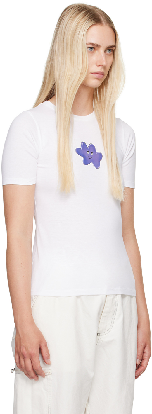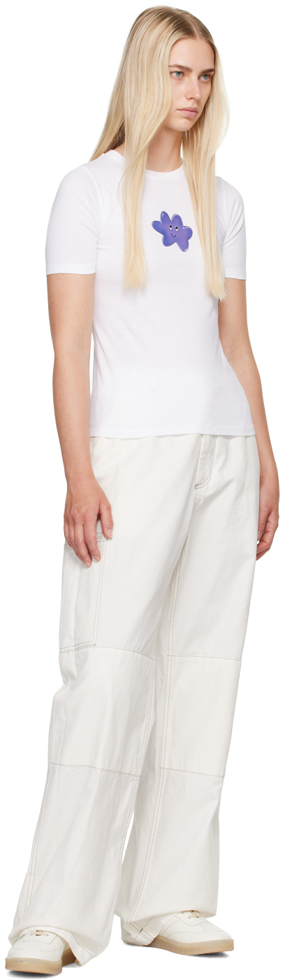 Белая футболка с рисунком. Футболка из хлопкового джерси. · Круглый вырез горловины в рубчик. · Рисунок, напечатанный спереди и сзади. · Белая строчка на воротнике сзади. · Логотип, напечатанный сзади. Цвет поставщика: белый 100% хлопок. Сделано в Италии.