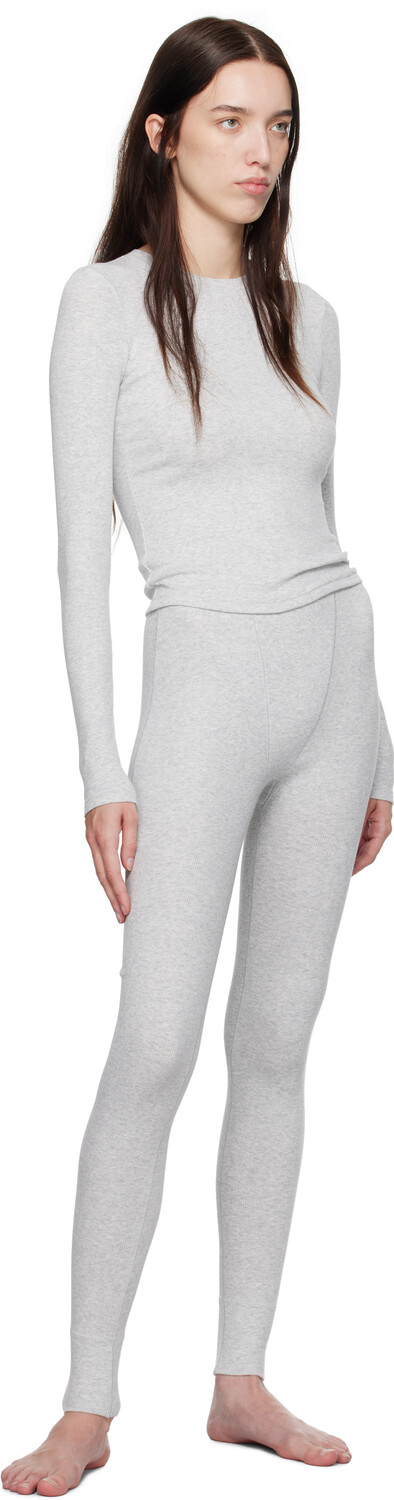 Серые хлопковые леггинсы в рубчик SKIMS, Light heather grey