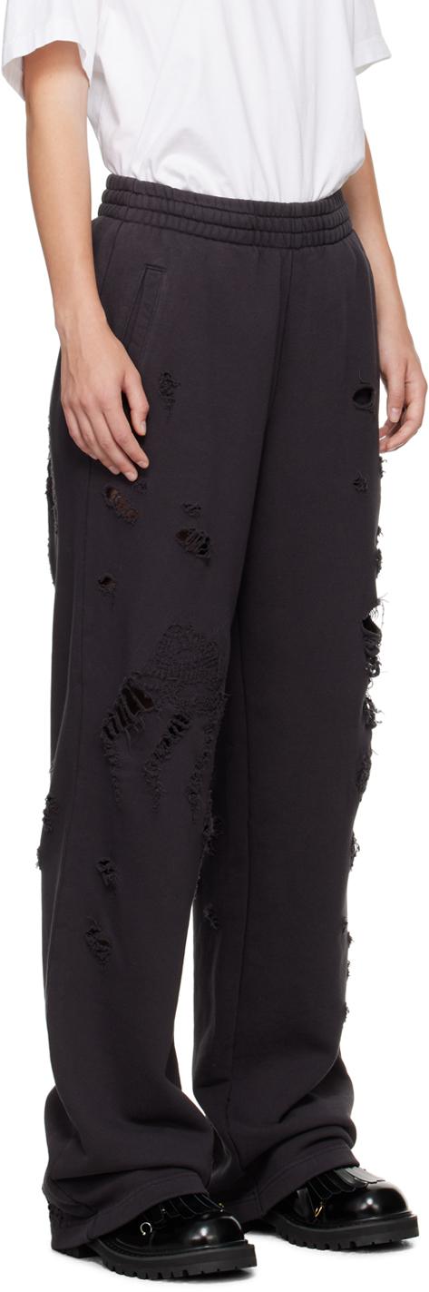 Черные потертые спортивные штаны. Свободного кроя из французского трикотажа. Потертости по всей длине.· Скрытый шнурок на эластичном поясе· Модель с двумя карманами· Вышитый логотип спереди на штанинеЦвет поставщика: черный 100% хлопок. Сделано в Южной Корее.