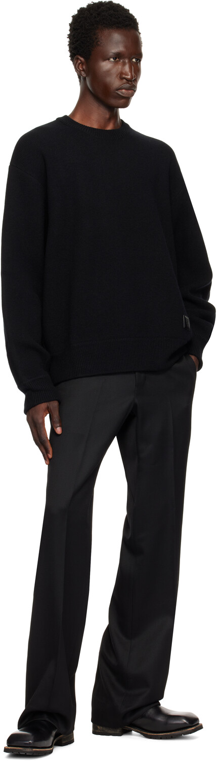 Черные шерстяные прямые брюки. Прямые брюки из шерстяной саржи.· Шлевки для ремня· Четыре кармана· Застежка-молния· Логотип спереди· Складки на штанинахЦвет поставщика: черный 100% шерсть. Сделано в Южной Корее.