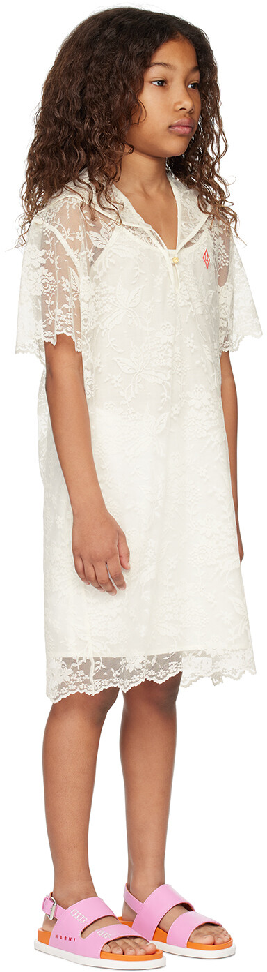 Детское белое платье «Божья коровка». Платье из прозрачного нейлонового кружева. Цветочный узор по всему изделию.· Многослойная конструкция· Воротник в морском стиле· Застежка на одну пуговицу· Вышитый логотип на груди· Фестончатый край на подоле и манжетах· Спущенные плечи· Съемная подкладка из гладкого хлопка в стиле комбинезона· Машинная стиркаЦвет поставщика: белыйМодель ростом 51,97 дюйма / 132 см, на изделии размер 8Y.The Animals ObservatoryРазмер: рост ребенка2Y: 36" / 92 см3Y: 38,5" / 98 см4Y: 41" / 104 см6Y: 45,5" / 116 см8Y: 50,5" / 128 см10Y: 55" / 140 см12Y: 60" / 152 см14Y: 64,5" / 164 смОснова: 100% полиамид. Подкладка: 100% хлопок. Сделано в Португалии.
