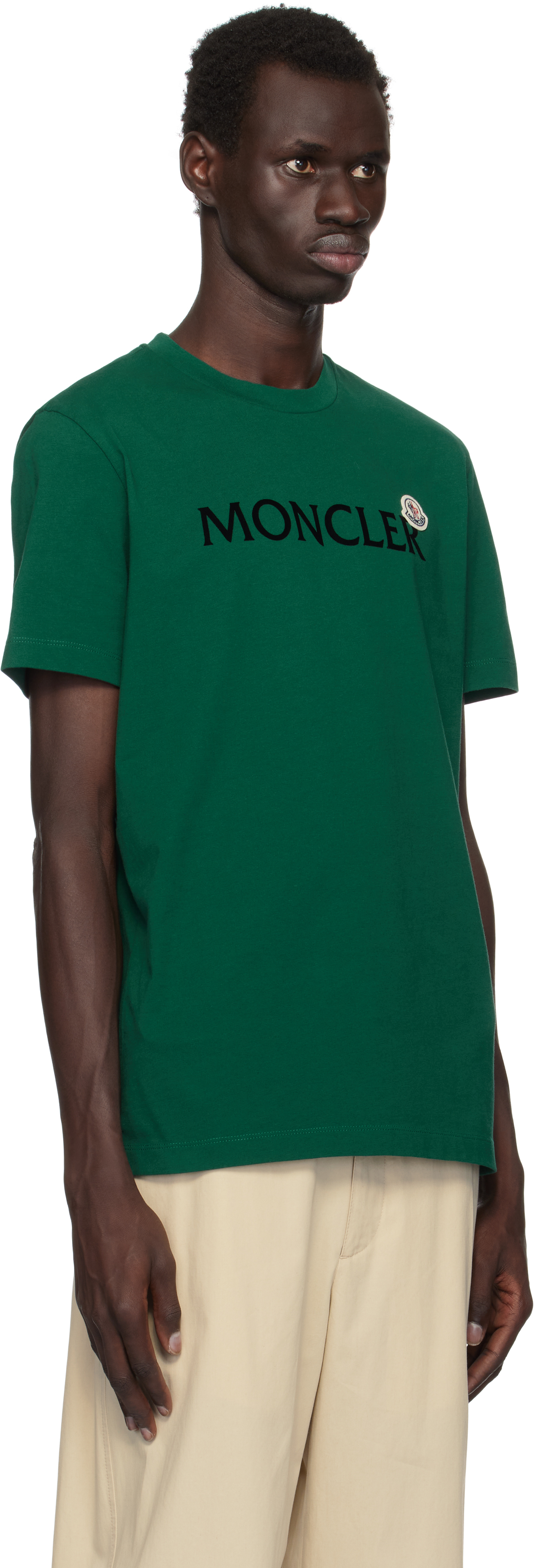 Футболка с зеленым флокированным логотипом Moncler