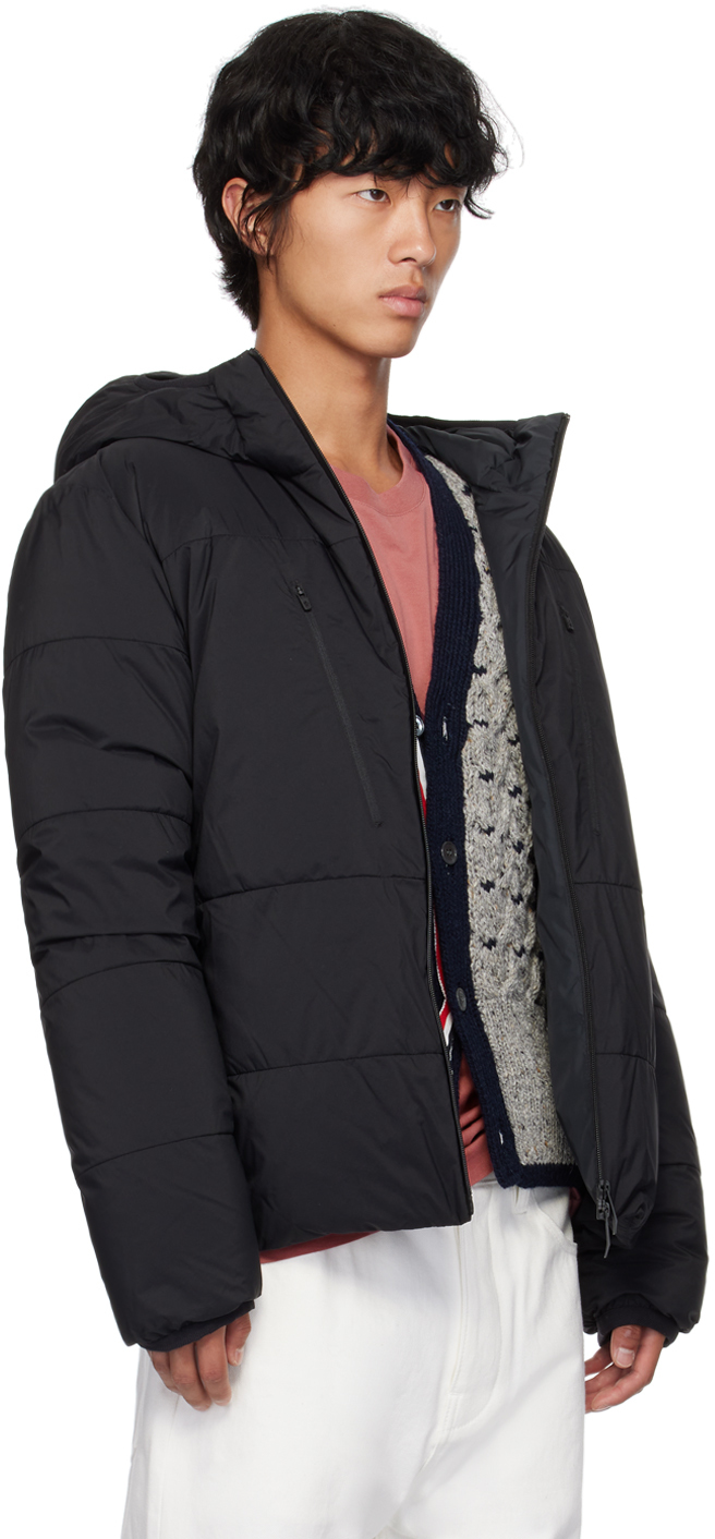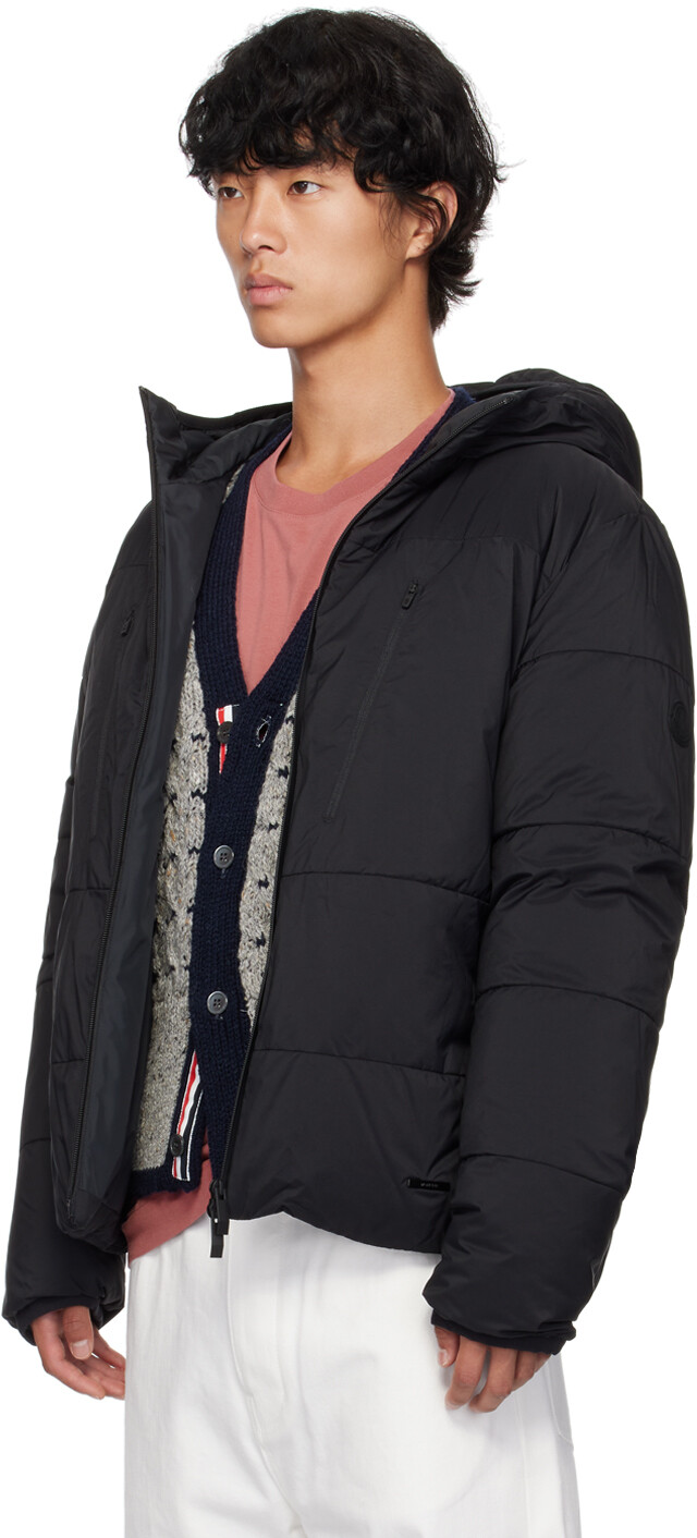 Черная куртка Hutte Down. Стеганая куртка из нейлоновой тафты с пуховым наполнителем, сертифицированная DIST.· Воротник-стойка· Двусторонняя застежка-молния· Карманы на молнии· Пластинка с логотипом на подоле спереди· Частично эластичный подгиб· Прорезиненная нашивка с логотипом на рукаве· Эластичные манжеты· Полностью стеганая подкладка из тафтыЦвет поставщика: черныйНаполнитель: 90% гусиный пух, 10% перо. Основная часть: 100% полиамид. Подкладка: 100% полиэстер. Сделано в Италии.