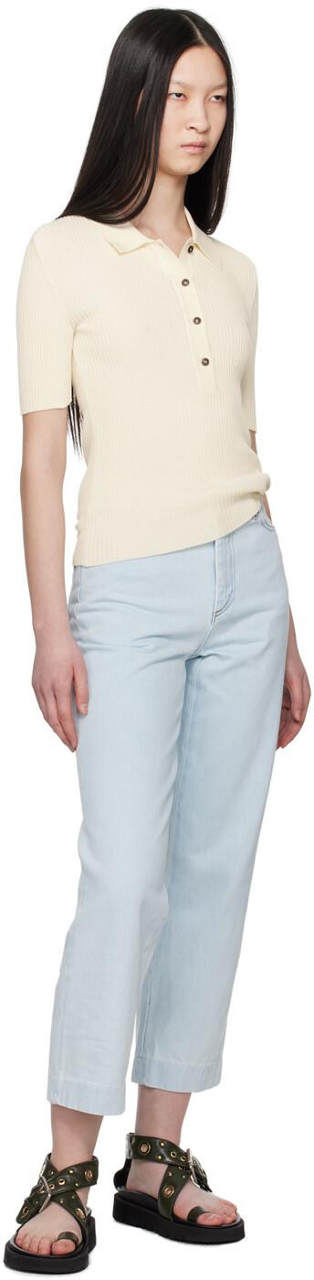 Синие джинсы New Sailor. Джинсы прямого кроя из неэластичного денима с клешем. Высокая посадка. Шлевки для ремня. Модель с пятью карманами. Застежка-молния. Укороченные штанины. Серебряная фурнитура с гравировкой логотипа. Контрастная строчка бежевого цвета. Цвет поставщика: отбеленный 100% хлопок. Сделано в Египте.
