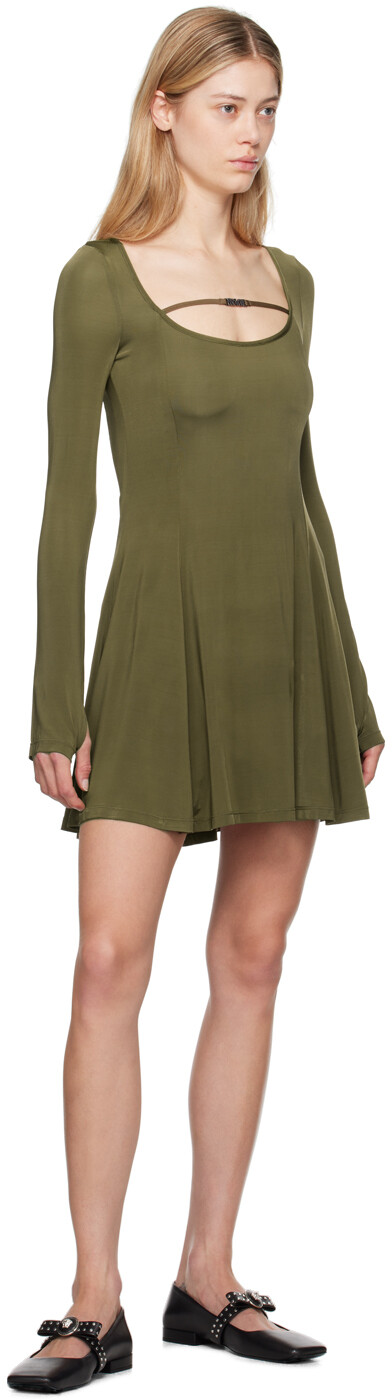Расклешенное мини-платье цвета хаки Versace Jeans Couture