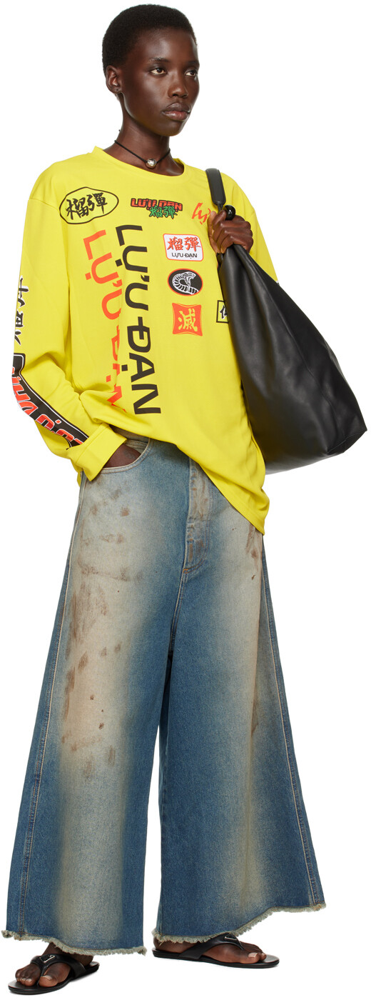 Синие широкие укороченные джинсы LU'U DAN, Stained blue