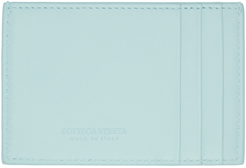 Синий держатель для карточек-кассет. Держатель для карточек из зернистой овечьей кожи с переплетением Intreccio синего цвета. Полированные края по всей поверхности. Три отделения для карточек и тисненый логотип на задней стороне. Центральный слот для купюр. Подкладка из зернистой телячьей кожи. Высота 3 x Ширина 4,5 дюйма. Цвет поставщика: сине-зеленая овечья кожа. Сделано в Италии.