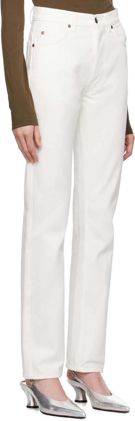 Белые джинсы Chad 5 Pocket. Джинсы прямого кроя из неэластичного органического денима. Средняя посадка. Шлевки для ремня. Модель с пятью карманами. Застежка на пуговицы. Флажок на заднем кармане. Фурнитура цвета состаренного золота. Цвет поставщика: белый. 100% органический хлопок. Сделано в Италии.