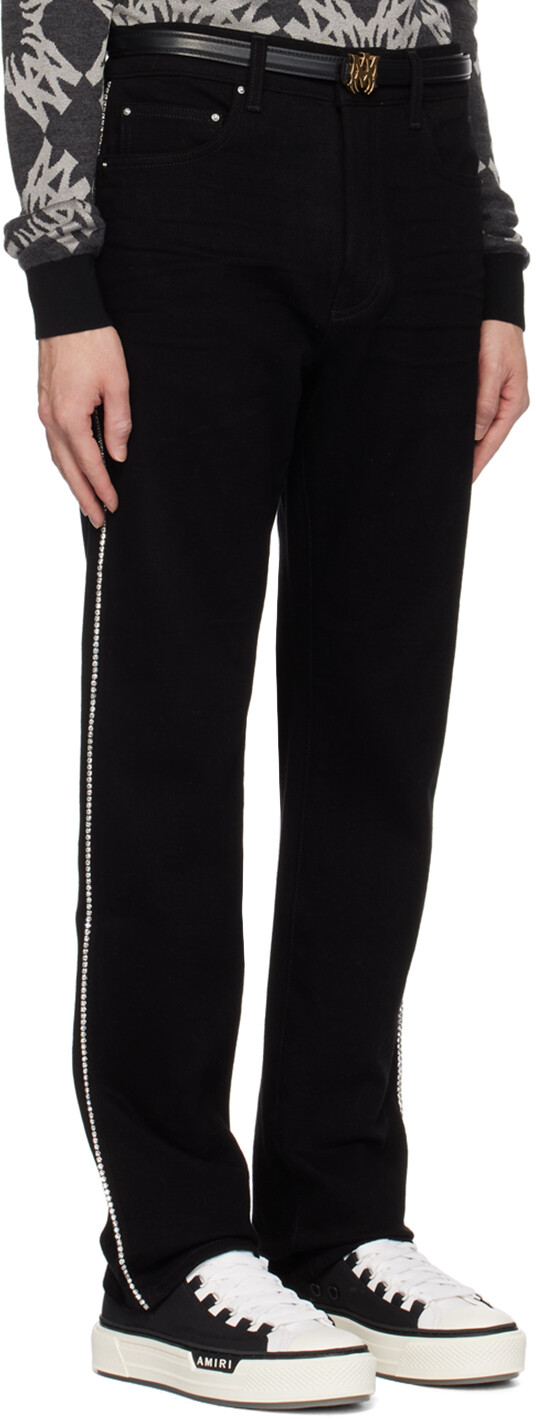 Черные узкие джинсы Crystal Stripe. Джинсы из эластичного денима.· Шлевки для ремня· Пять карманов· Застежка на пуговицы· Аппликации с кристаллами на внешних швах· Нашивка с логотипом Jacron на поясе сзади· Пластинка с логотипом на заднем кармане· Серебристая фурнитура с гравировкой логотипаЦвет поставщика: черный 98% хлопок, 2% эластан. Сделано в США.