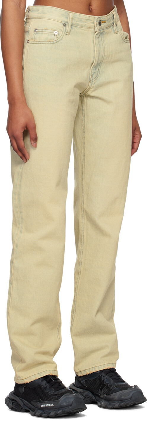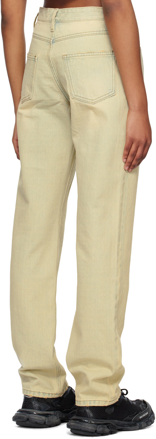 Бежевые джинсы прямого кроя. Джинсы прямого кроя из неэластичного денима. Выцветание, потертости и потертости по всей длине. Шлевки для ремня · Модель с пятью карманами · Застежка-молния · Фурнитура серебристого тона с гравировкой логотипаЦвет поставщика: бежевый 100% хлопок. Сделано в Южной Корее.
