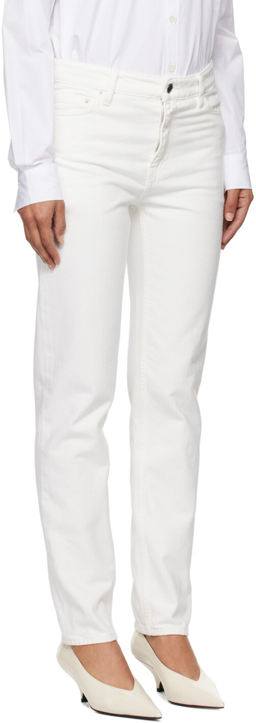 Белые зауженные джинсы. Прямые и зауженные джинсы из неэластичного органического хлопкового денима.· Низкая посадка· Шлевки для ремня· Модель с пятью карманами· Застежка-молния· Нашивка с логотипом Jacron на поясе сзади· Серебристая фурнитура с гравировкой логотипаЦвет поставщика: белый 100% органический хлопок. Сделано в Турции.