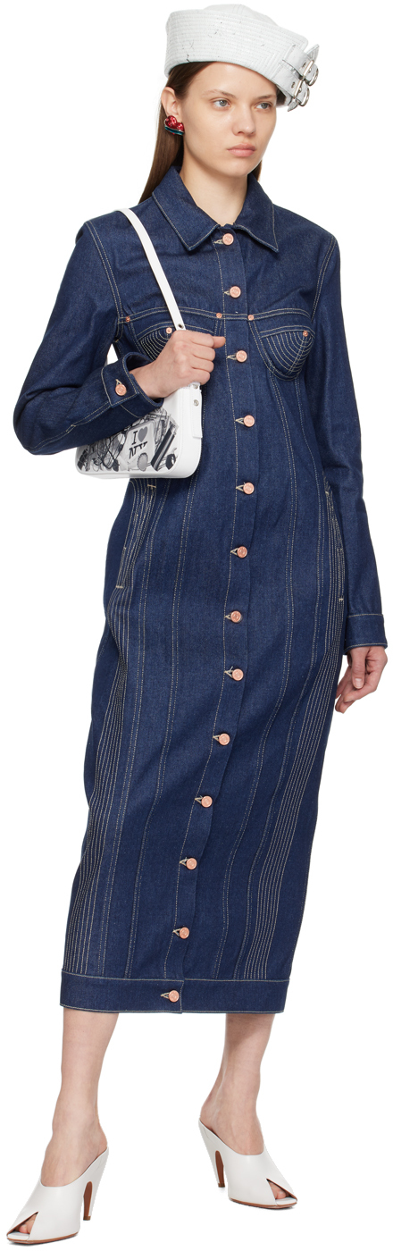 Длинная джинсовая куртка цвета индиго Jean Paul Gaultier