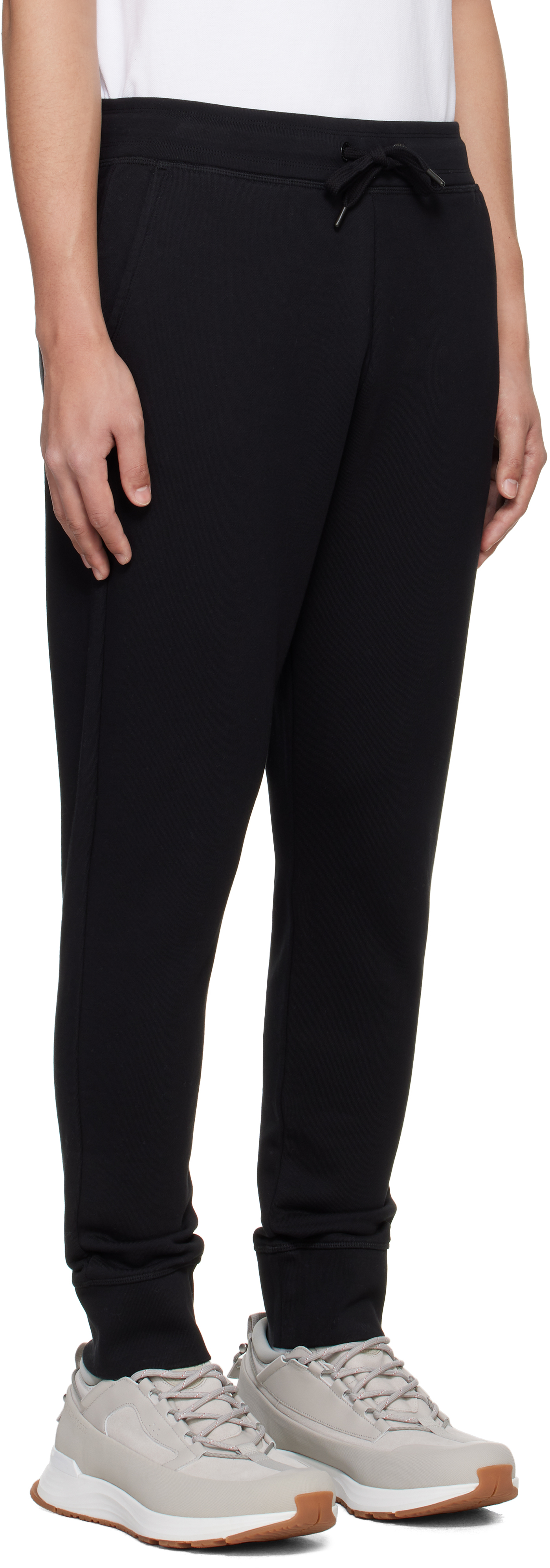 Черные спортивные штаны Huron. Спортивные штаны из французского трикотажа. · Затягивающийся шнурок на эластичном поясе. · Трикотажный пояс и манжеты в рубчик. · Три кармана. · Вышитый логотип спереди. Цвет поставщика: черный, 100% хлопок. Сделано в Португалии.