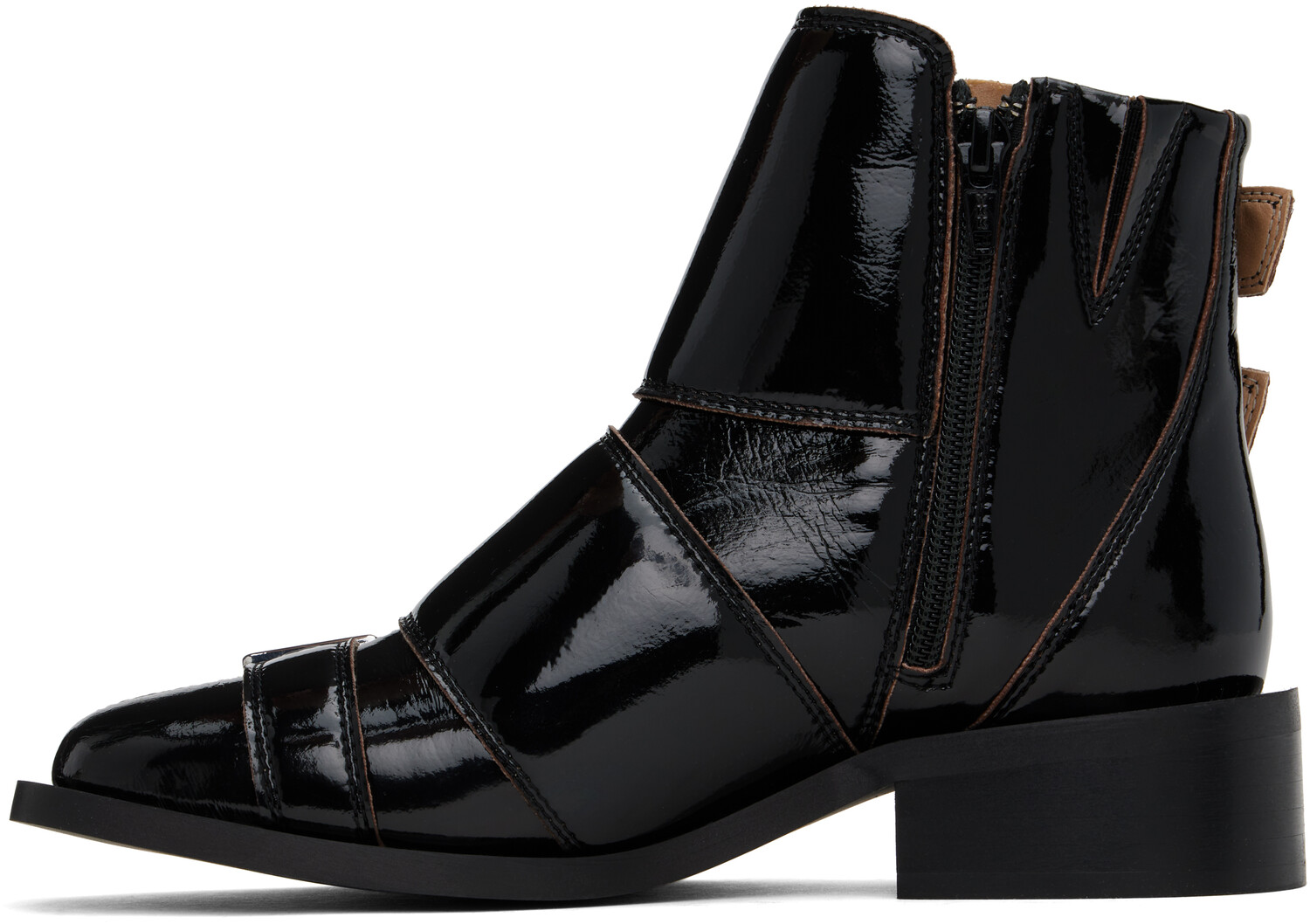 Черные женские сапоги из наплака с пряжкой. Ботинки из мятой искусственной кожи черного цвета до щиколотки. Квадратный носок. Ремешки с пряжками на мыске и внешней стороне. Застежка-молния с внутренней стороны. Скрытая эластичная ластовица. Подкладка из полированной искусственной кожи. Наборный каблук из искусственной кожи с резиновым напылением. Резиновая подошва. Каблук: H1,5". Цвет поставщика: черный. Верх: синтетика. Подошва: резина. Сделано в Португалии.