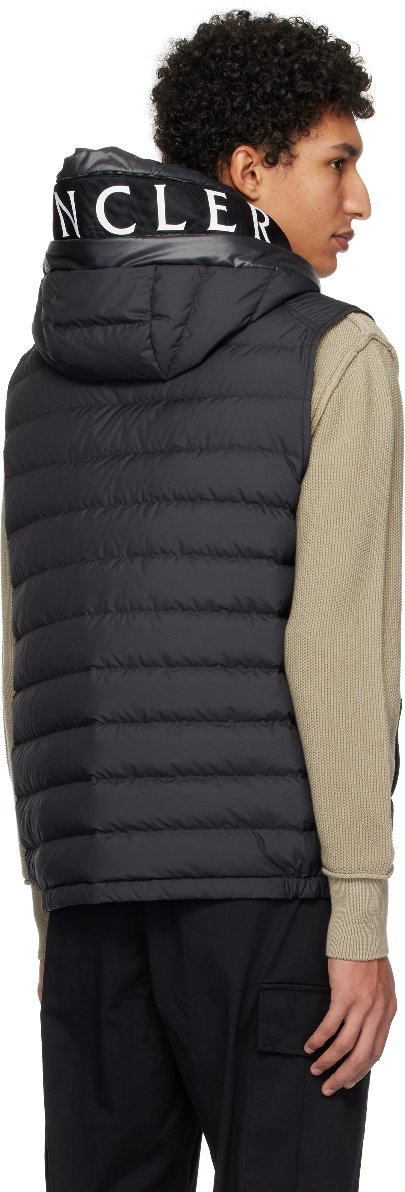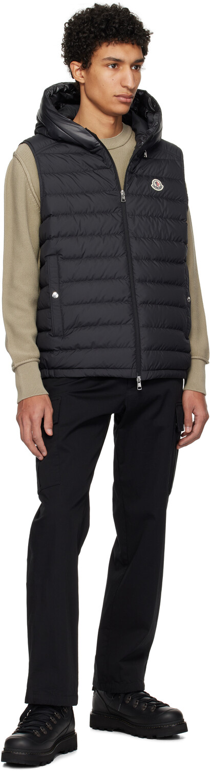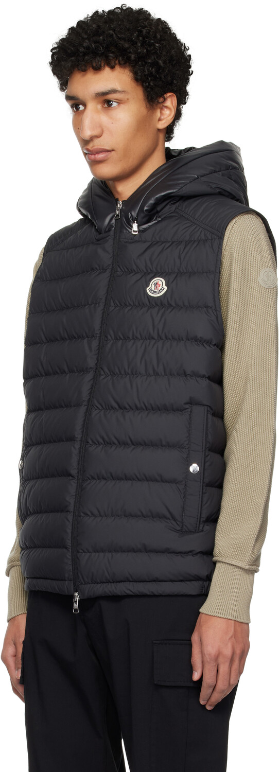 Черный жилет Bourget с капюшоном. Стеганый жилет из переработанной полиэстеровой тафты с наполнителем из пуха. · Расширительная планка на молнии на капюшоне со скрытым логотипом. · Воротник-стойка. · Двусторонняя застежка-молния. · Прорезные карманы на кнопках. · Войлочная нашивка с логотипом на груди. · Частично эластичный подол. · Карман на молнии внутри. · Полностью на подкладке. · Серебристая фурнитура с гравировкой логотипа. Цвет поставщика: черный. Наполнитель 1: 90% пух, 10% перо. Основная часть: 100% полиэстер. Наполнитель 2: 100% полиэстер. Сделано в Армении.