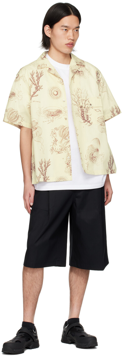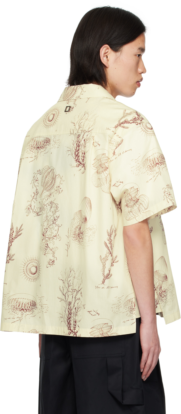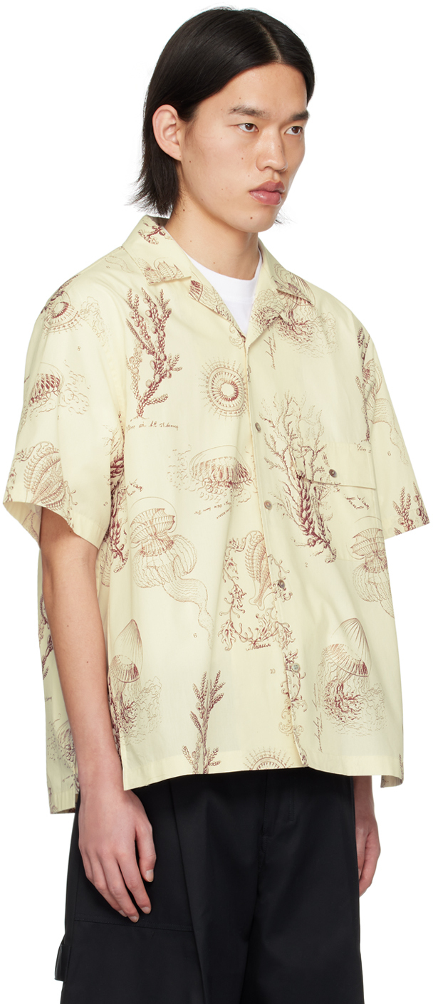 Рубашка с рисунком Off-White. Рубашка из хлопкового поплина. Графический рисунок, напечатанный по всей длине. · Открытый отложной воротник· Застежка на пуговицы· Карман с клапаном на груди· Вставки по боковым швам· Фурнитура с логотипом сзади· Двойные складки на кокетке сзадиЦвет поставщика: слоновая кость 100% хлопок. Сделано в Южной Корее.
