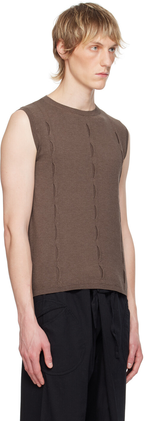 Коричневый топ Forat. Трикотажный топ из смеси вискозы. Круглый вырез, подол и проймы связаны резинкой. Встречные складки спереди. Цвет поставщика: коричневый 72% вискозы, 28% полиэстера. Сделано в Испании.