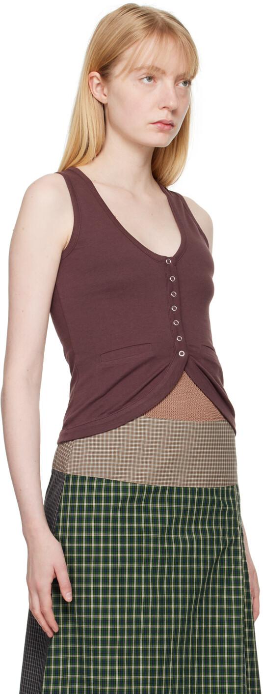 Коричневый топ Maelynn. Топ из хлопкового джерси. Глубокий V-образный вырез. Застежка на кнопки. Прорезные карманы. Изогнутый подол. Цвет поставщика: Коричневый, 100% хлопок. Сделано в Индии.
